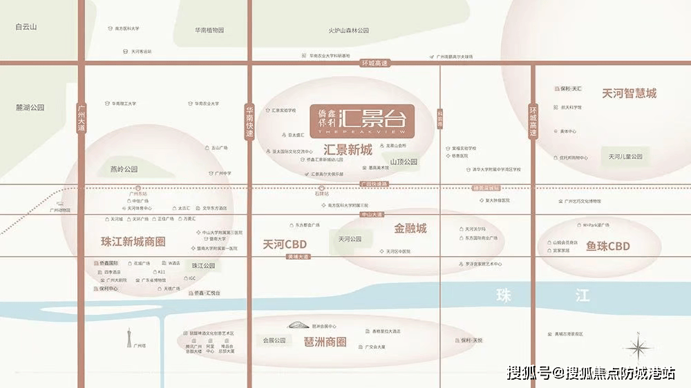 侨鑫保利·汇景台坐拥天河城央核心区位,位于汇景新城东北区、龙熹山正北面,凭借优越的地理位置,实现了自然景观与城市资源的双重占有。项目南近珠江新城CBD,北望火炉山森林公园,东接科韵路,西连汇景新城2公里景观中轴带,周边环绕科学城、智慧城、广东奥林匹克体育中心等核心板块,区位价值得天独厚。在交通配套上,项目周边路网四通八达,广园快速、华南快速、广州环城高速等多条主干道环绕,自驾出行极为便捷。从项目出发,可快速抵达珠江新城、天河北、琶洲等核心商圈,日常通勤、商务出行高效省心。公共交通方面,目前距离地铁3号线公里,距离最近的组团约1.5公里,虽暂未实现地铁直达,但区域内公交体系完善,可无缝接驳地铁站点。