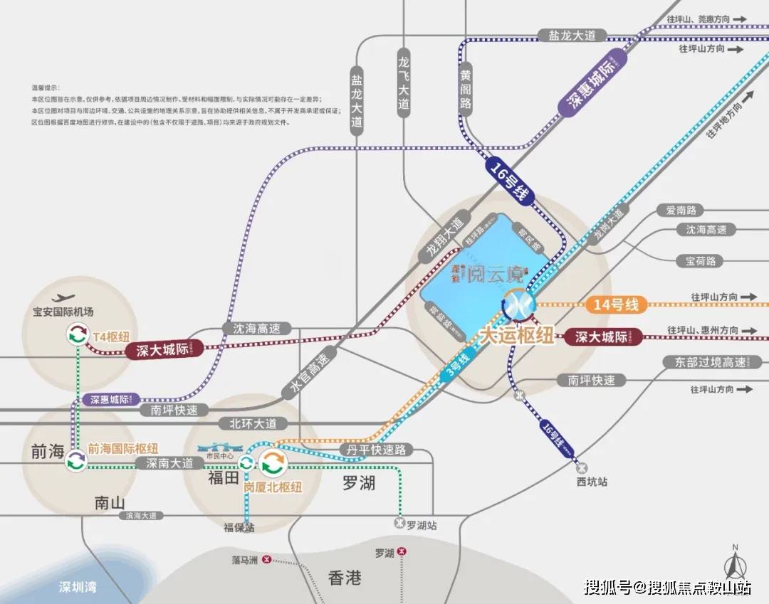 地铁上盖:项目与地铁16号线、深大城际(在建)大运站无缝衔接,未来还可换乘3号线号线,快速通达福田、罗湖、坪山等地。